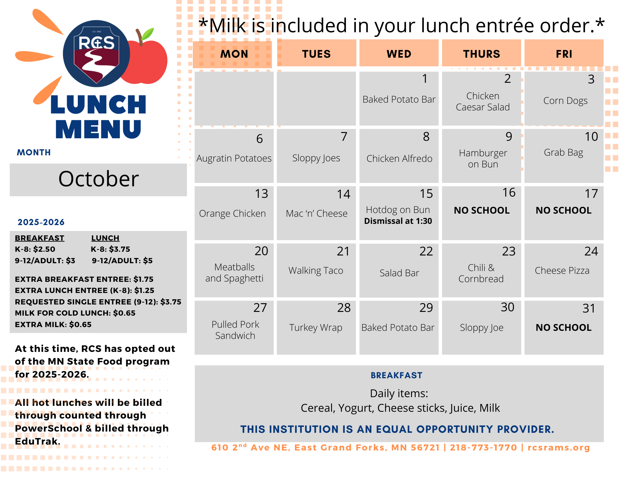 October 2025 Menu